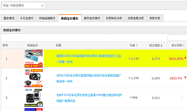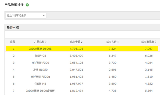在天貓, 捷渡行車記錄儀產(chǎn)品熱銷排行第一 :