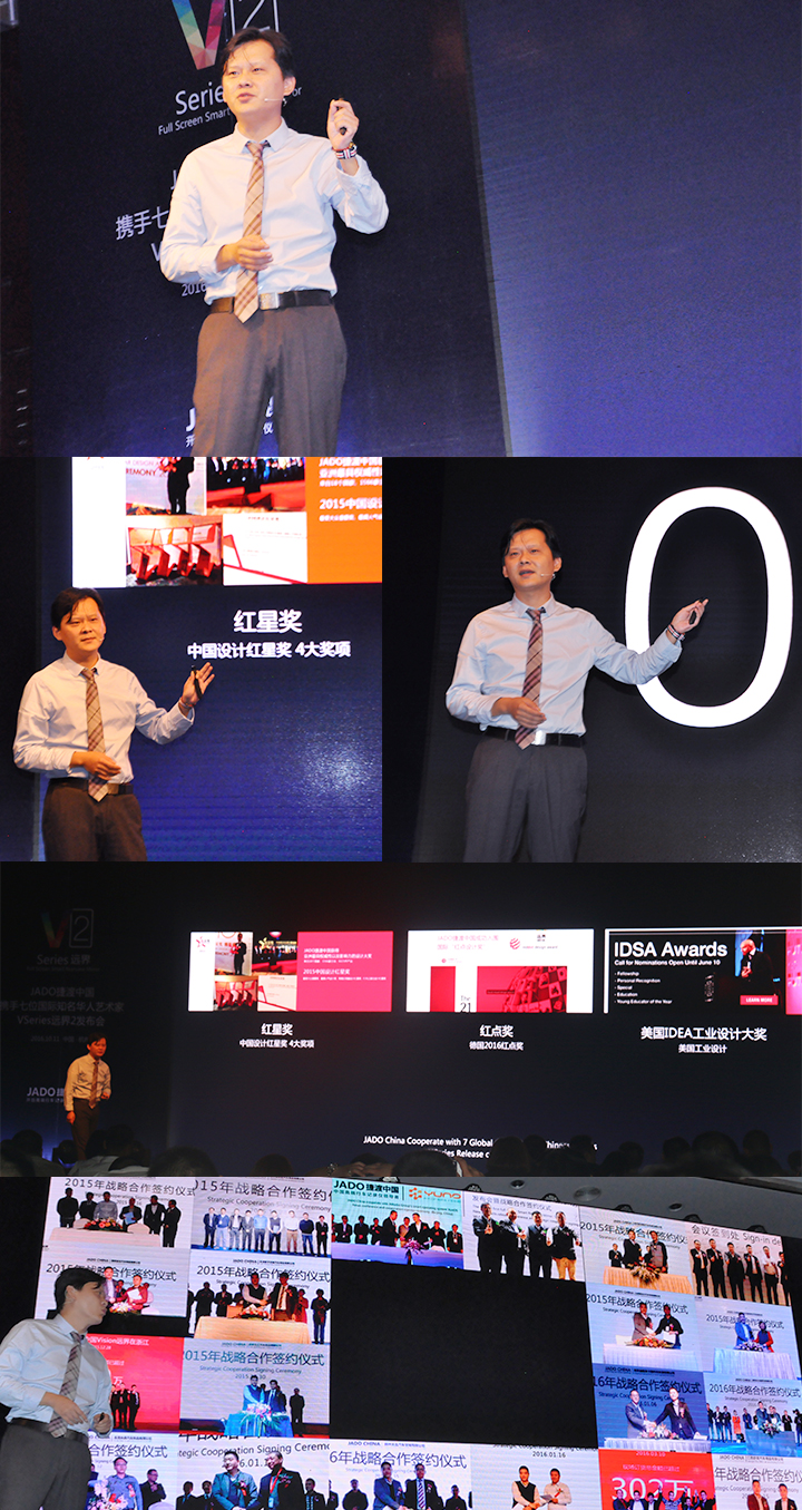 JADO捷渡中國董事長王杰先生上臺致辭,重點為大家講述了“為什么要說再見”以及“VSeries遠界2的功能介紹”。