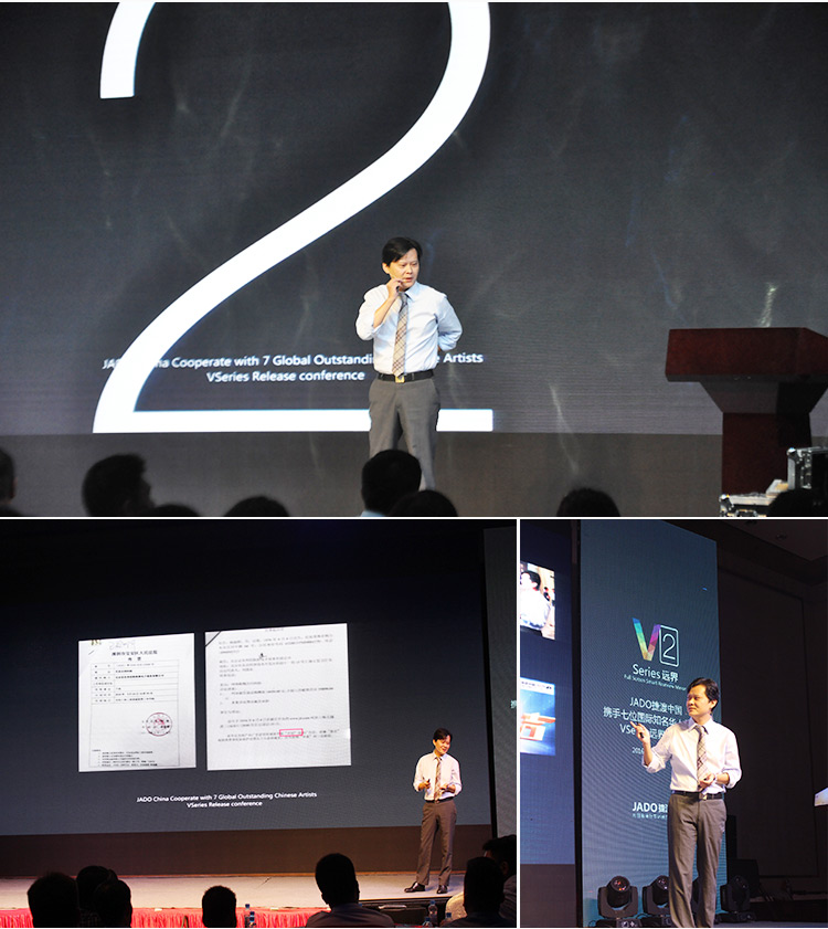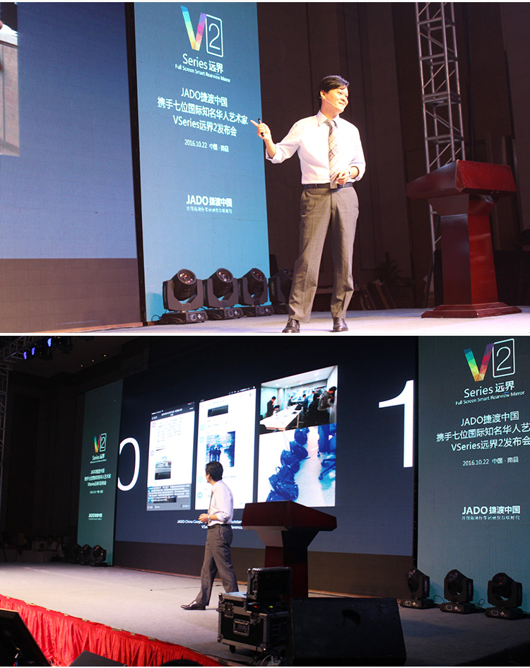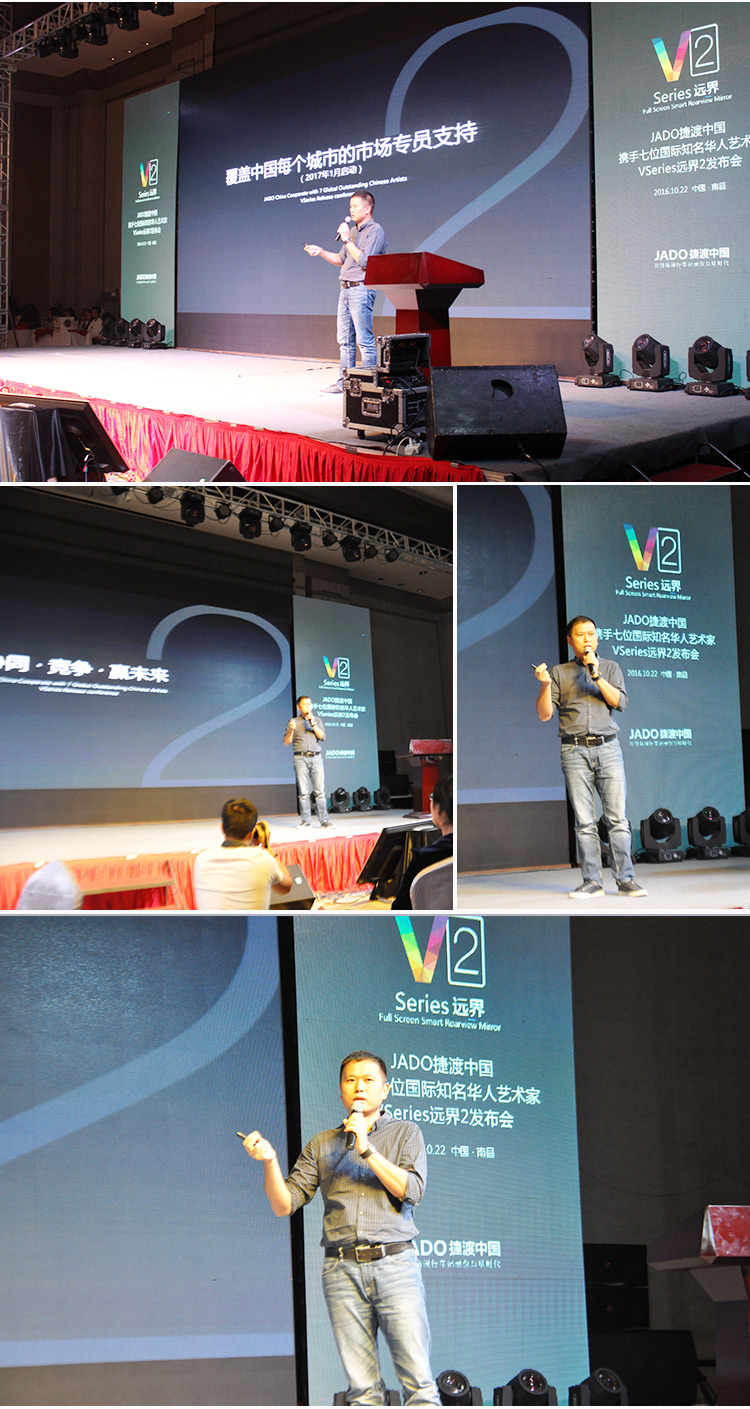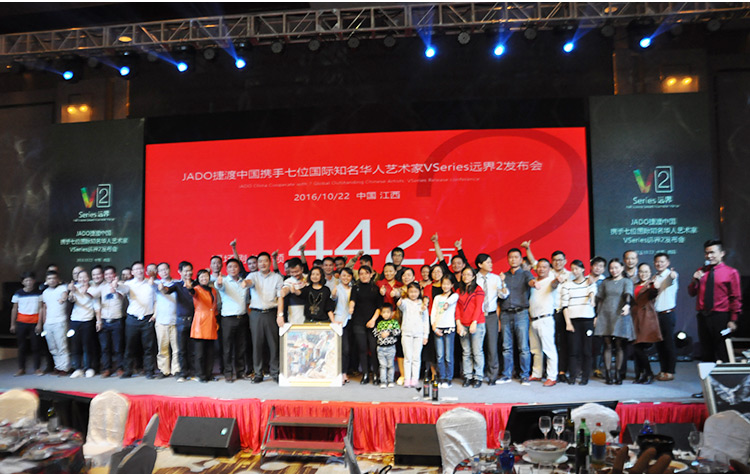 2016年10月22日,以 “再見,過去;你好,遠界 Bye yesterday, Hello VSeries” 為主題的“JADO捷渡中國攜手七位國際知名華人藝術家VSeries遠界2(中國• 江西)發布會”在南昌凱美開元名都大酒店完美落幕。本次活動由JADO捷渡中國江西省戰略合作伙伴江西舒美汽車用品實業有限公司主辦。
