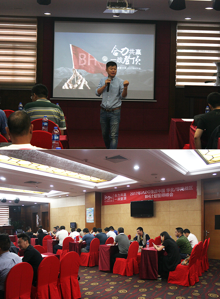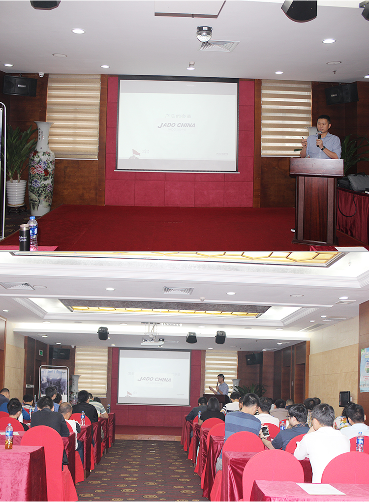 2017年4月27日,主題為“合力共贏,一戰登頂”的JADO捷渡中國2017華南、華北戰區決戰終端誓師峰會在中國·深圳民都大酒店隆重舉行。