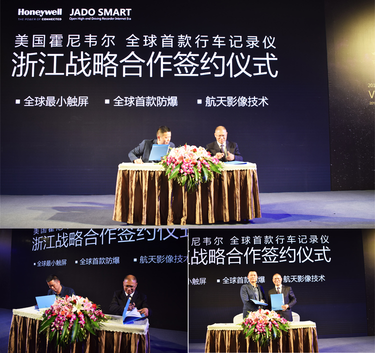 JADO捷渡智能(中國)營銷中心總經(jīng)理陳問文先生與杭州肯諾汽車用品有限公司總經(jīng)理徐善振先生進(jìn)行了霍尼韋爾行車記錄儀在浙江地區(qū)的簽約授權(quán)儀式,這標(biāo)志著霍尼韋爾行車記錄儀開啟了浙江區(qū)域市場(chǎng)。