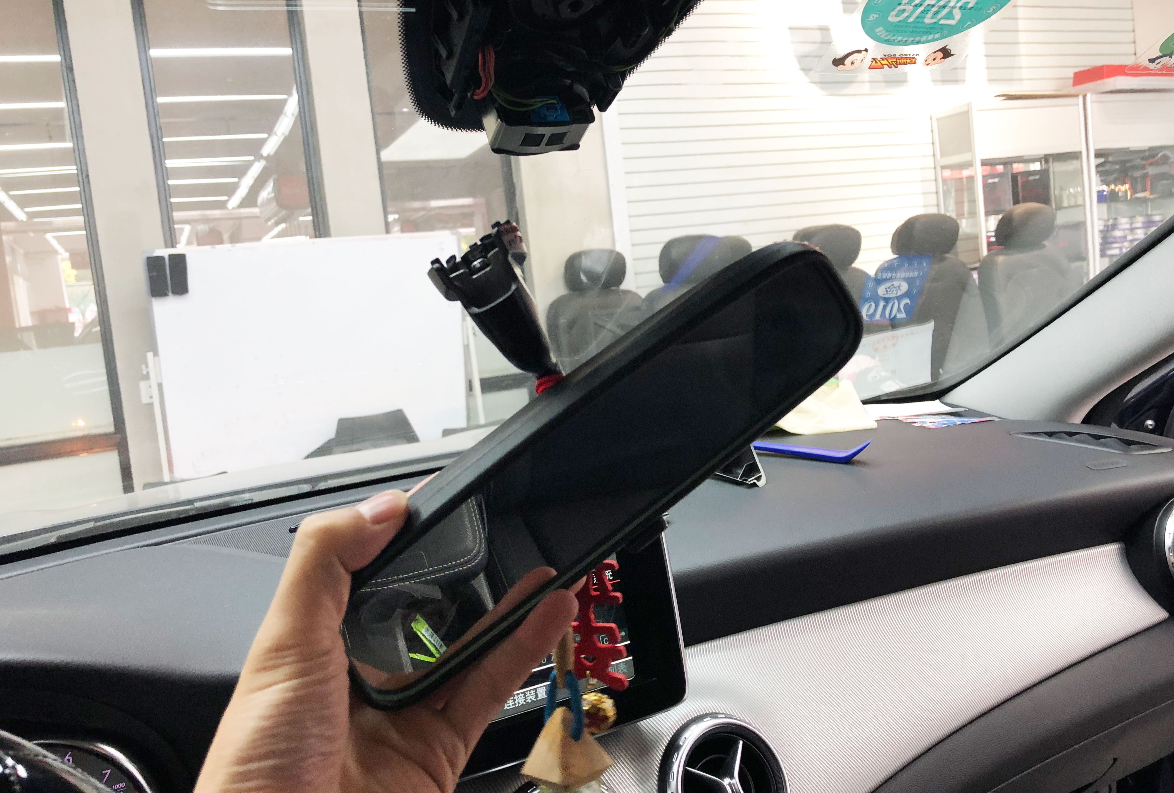 師傅開始預埋后視攝像頭線束
