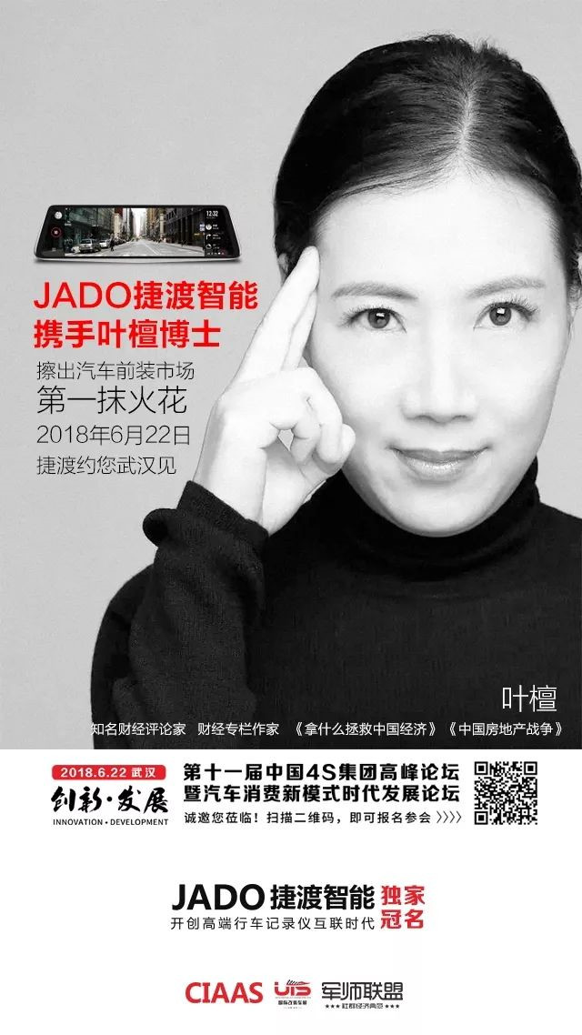 第16屆中國(武漢)國際汽車后市場博覽會暨第5屆中國國際汽車升級及改裝展覽會,歷經3年培育與發展,現已成為中國最具影響力的專業展會,此次武漢展將設12個場館,總面積達12萬平米,設7000個室內標準展位,預計觀展人數將達20萬人。此次JADO捷渡智能(中國)攜手點金國際傳媒,邀請近千家前裝車廠以及4S店集團,將在6月22日舉行千人會議,以及“捷渡冠軍之夜”活動,同時邀請了 “財經女俠”葉檀出席此次會議,和行業大佬們縱論汽車后市場經濟。誰會成為此次展會的冠軍?我們相信此次武漢展一定會讓您不虛此行, 6.22我們不見不散!JADO捷渡智能和您一起見證冠軍的誕生!!!