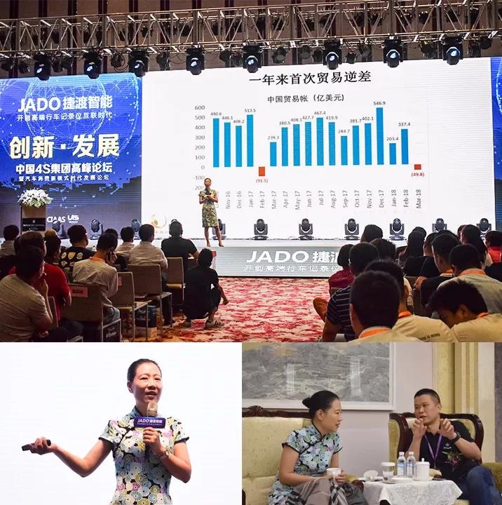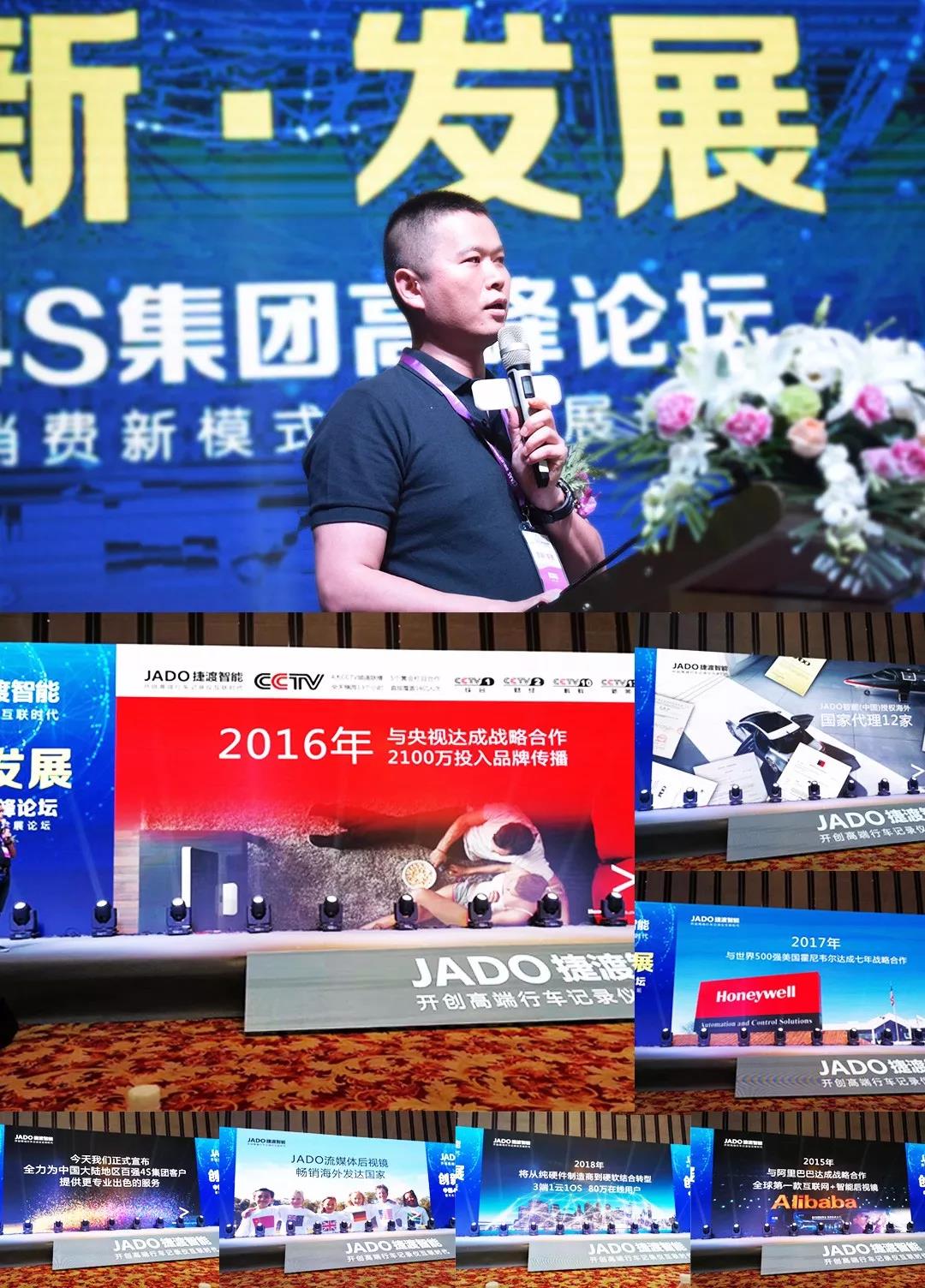 2018年6月22日,由JADO捷渡智能(中國)獨家冠名的“創新·發展 第十一屆中國4S集團高峰論壇暨汽車消費新模式時代發展論壇”(以下簡稱“捷渡4S集團高峰論壇”)在武漢洲際會議中心隆重開幕。吸引了來自全國的4S集團相關負責人、服務商以及汽車電子生產廠家、渠道商等近千人參與了本次大會。