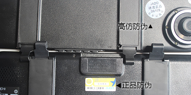 2、 看防偽:正品捷渡 D610 有防偽條形碼和出廠編號;而高仿的 D610 卻貼有"捷渡正品"字樣以迷惑客戶,不懂的客戶還以為真的是正品呢,很有點此地?zé)o銀三百兩的味道。