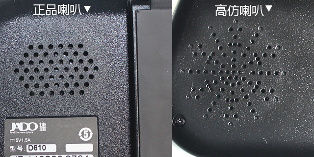 4、 看喇叭孔:正品捷渡 D610 是規(guī)矩的六角形;高仿 D610 日喇叭孔,是放射的"米"字形,也比正品捷渡 D610 花哨點。讓圖說話: