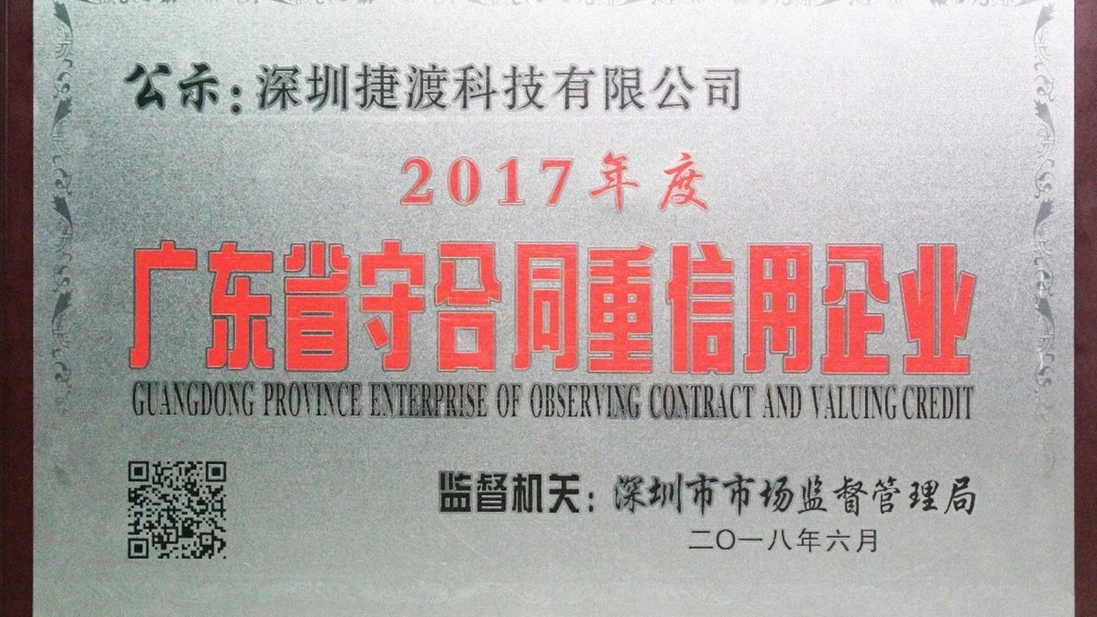 - 2018-06-27 【榮譽(yù)】JADO捷渡智能(中國)榮獲“守合同重信用企業(yè)”稱號