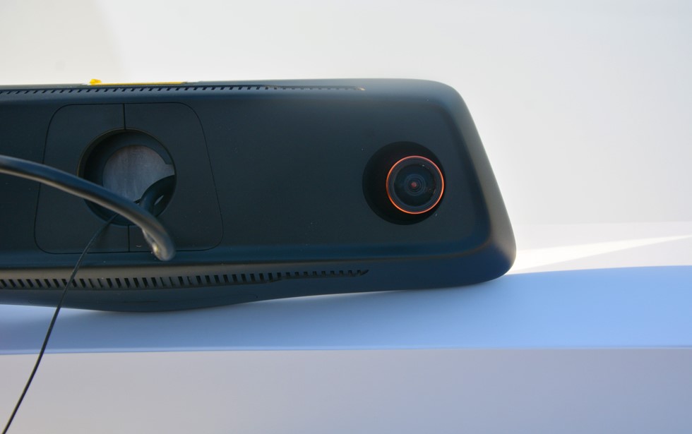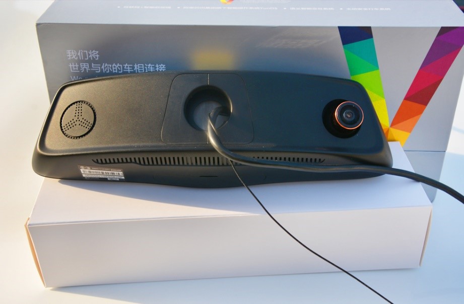 背面,左側(cè)是揚(yáng)聲器,右側(cè)是攝像頭,攝像頭略微凸出,而且還可適當(dāng)?shù)恼{(diào)整攝像頭的位置,且與前置攝像頭相匹配的還有后置攝像頭,后置攝像頭不僅可以記錄行車過程中后置場景,而且在倒車時(shí)也可以使用,當(dāng)然記錄行車過程中車后面的狀況才是后置攝像頭的主要功能。