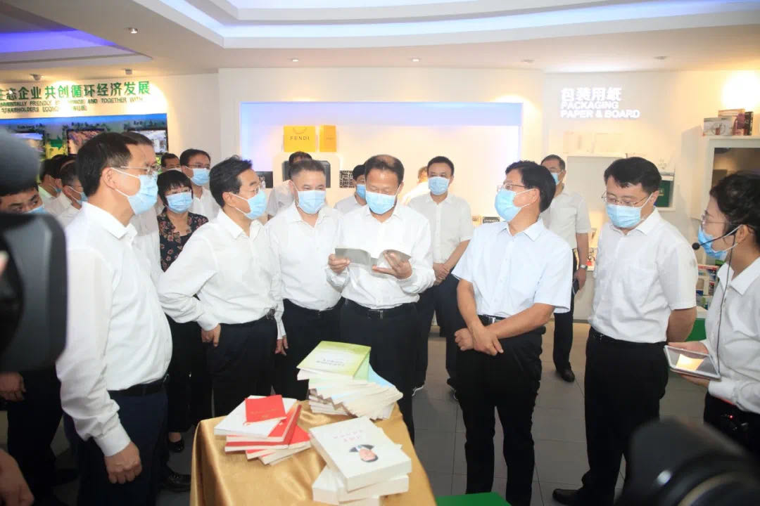 在晨鳴集團(tuán)董事長陳洪國陪同下,黃岡黨政代表團(tuán)一行重點參觀了晨鳴集團(tuán)企業(yè)文化展廳,詳細(xì)了解了晨鳴集團(tuán)的發(fā)展歷程、產(chǎn)業(yè)布局、科技研發(fā)、綠色環(huán)保等方面的情況。