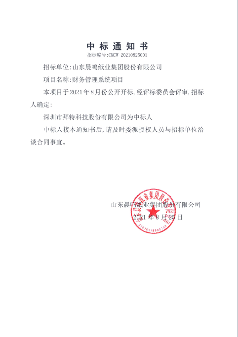 財(cái)務(wù)管理系統(tǒng)項(xiàng)目中標(biāo)通知書