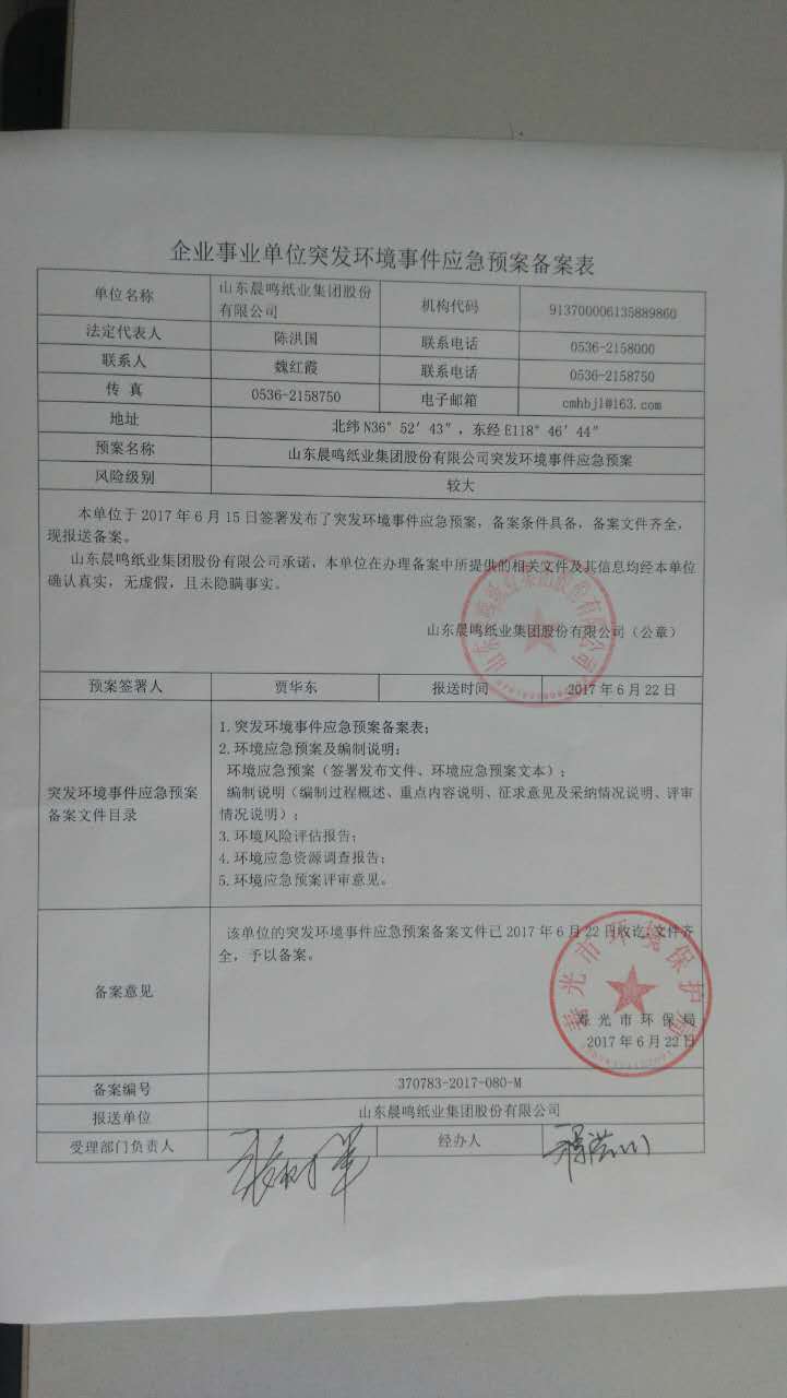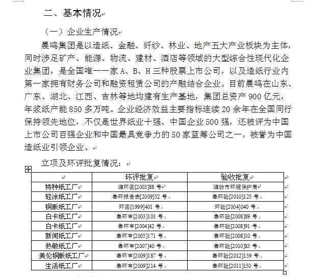 山東晨鳴紙業集團環境信息公開